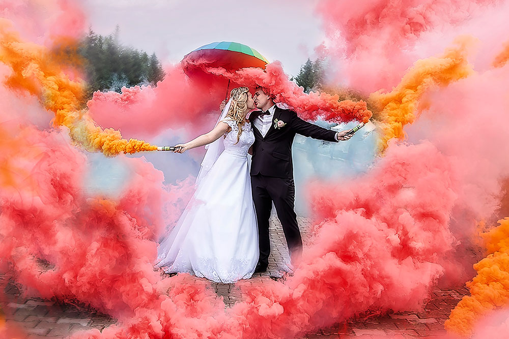 Нет, дым не оставляет следов на одежде. Вы можете зажечь дым и в платье, и в костюме.